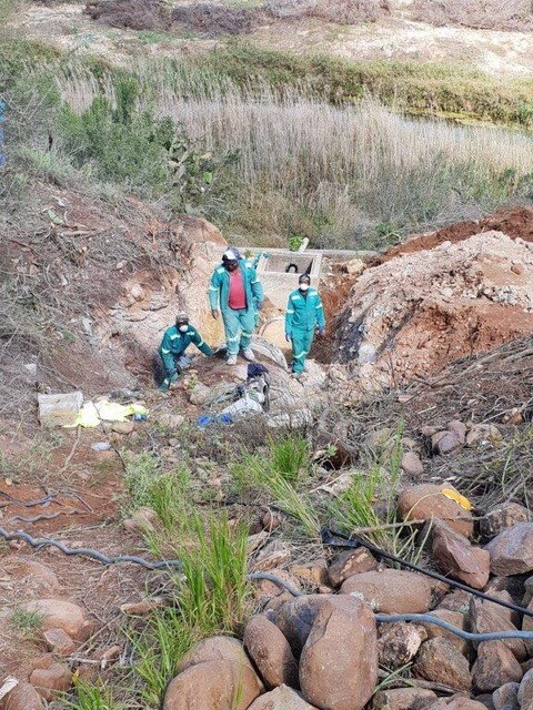 It had to be replaced by a 16m steel pipe with a 900mm diameter. A specialized contractor had to be used to do this work. The work was completed with a 30 ton excavator on very dangerous and steep terrain.